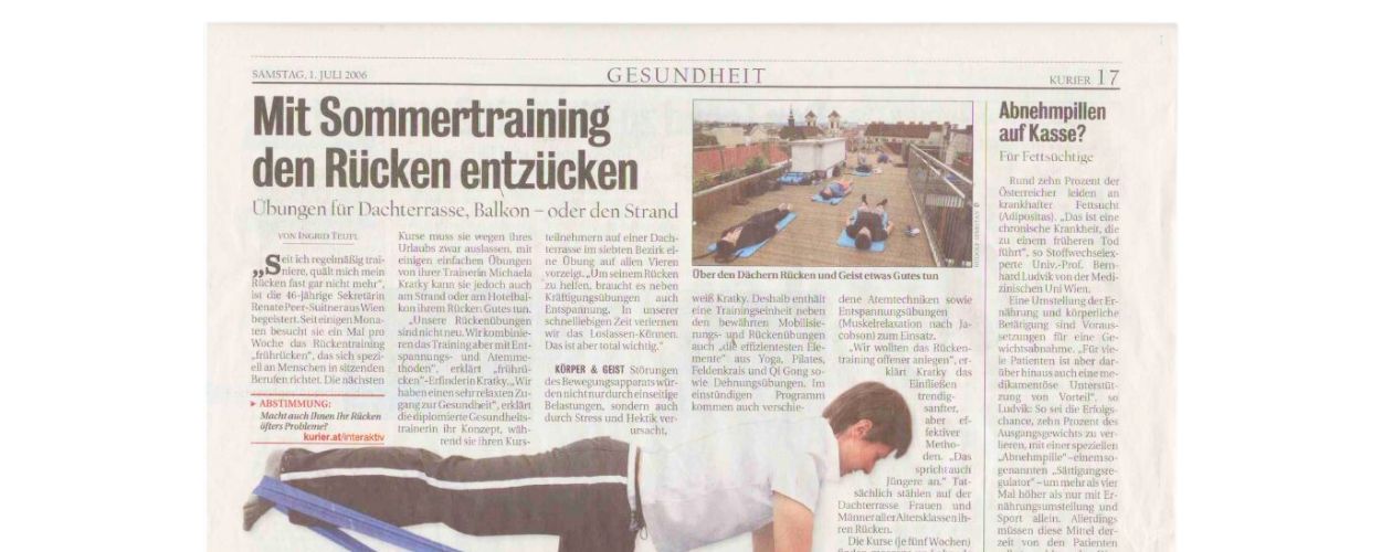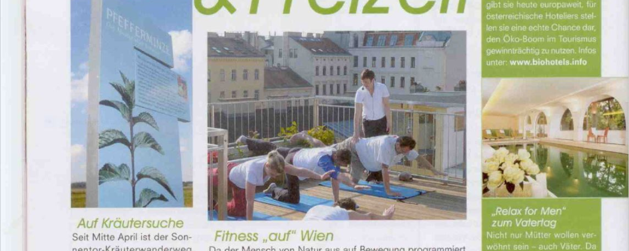 Erstmals erscheinen zahlreiche Presseartikel (Standard, Presse, Die Apothekerin, Freizeit Kurier, Magazin Gesundheit, Maxima, Wellness Magazin, Wienerin, Woman u.v.m.) über unsere beliebten sommerlichen Trainingseinheiten über den Dächern bei Sonnenaufgang oder bei sanfter abendlicher Brise.