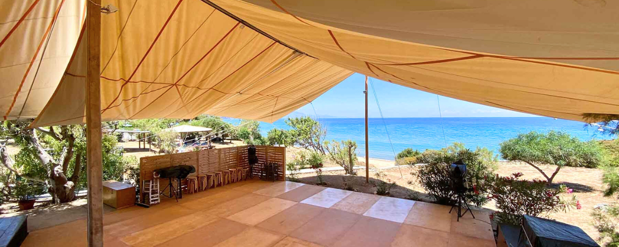Im Rahmen der idyllischen Sommerakademie Griechenland auf Zakynthos findet unser Training erstmals unter einem im Wind flatternden Sonnensegel direkt am Meer statt.